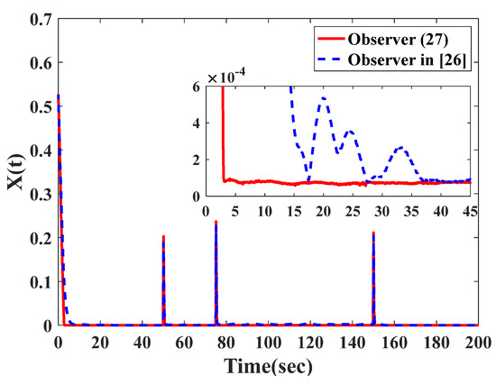 The comparison results of the observer in Equation (27) and the observer in [26].
