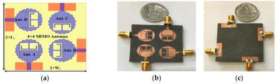 - Wani, Z.; Kumar, D. A Compact 4 × 4 Mimo Antenna for Uwb Applications. Microw. Opt. Technol. Lett. 2016, 58, 1433–1436. [Google Scholar] [CrossRef]
