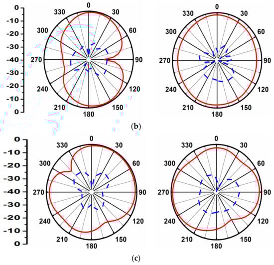 The 2-D radiation pattern of the reported work at (a) 4.50 GHz; (b) 6.85 GHz; (c) 11.0 GHz.