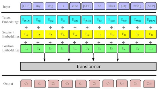 BERT input–output representation [26]. We use BERT to generate word embeddings.