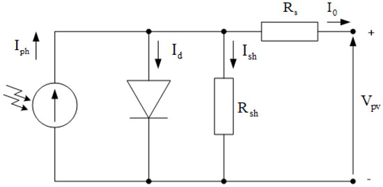 Solar energy is an energy that humans can use indefinitely, and in addition, we can find it easily. It appears and can be received everywhere and has high energy stability [1], although the problem is that the price for us to convert energy to use in a manner like fossil energy is still high. However, it is not the main problem because energy can change depending on market factors. We need to study and develop research to make solar energy use more stable and cost-effective. For this reason, currently, many countries around the world are developing and using more and more solar energy [2,3,4] because solar energy is clean energy with no fuel costs [5], and it is also very safe compared to fossil and nuclear power [6]. It is cost-effective, simple, clean, noise-free, and environmentally friendly to operate and maintain. Solar energy usage patterns are broadly divided into two forms, depending on the method of capturing light energy, transformation into another form of energy, and redistribution of that energy. The first form, known as active solar, is a photovoltaic method, or solar thermal, to capture and convert solar energy directly into electrical or thermal energy. Another form of passive solar is an indirect method of utilization included building designs in cold countries to maximize the sunlight or installing thermal mass-sensitive materials [7]. It can be applied to balance the indoor air, installing materials with light-diffusing properties, designing a space naturally circulating air. Solar photovoltaic is to convert solar energy into electrical energy [8,9]. The use of solar cells was first produced in 1883 by Charles Fritz and started using selenium in 1941 [10]. Monomolecular silicon solar panels relatively have high production costs. The use of solar panels in the early days focused on space applications such as satellites. After experiencing rising oil prices in 1973 and 1979, the developed countries turned their attention to solar energy improved more seriously. Photovoltaic (PV) is currently considered the most popular renewable energy [11,12,13] due to its many advantages. However, there are still some disadvantages compared to conventional power sources [14], particularly the high production costs, low power conversion [15,16,17], and nonlinear I-V and P-V characteristics, as shown in Figure 1. The equivalent circuit of photovoltaic cells is shown in Figure 2. Therefore, it is difficult to harvest energy from solar cells to achieve maximum efficiency. PV systems are now widely used in battery charging, water pumping, and grid-connected [18,19]. Various algorithms such as perturbation and observation (P&O) to optimize the PV system, increment conductance (INC), fuzzy logic (FL), particle swarm optimization (PSO), and hybrid are used [20].