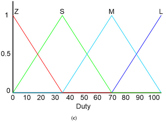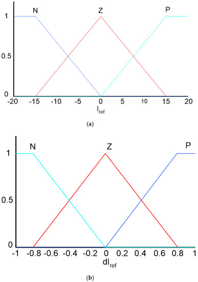 By using the symmetry fuzzy rule, the input and output membership function of fuzzy logic are shown in Figure 5. In order to reduce the oscillations around the MPP, therefore, the regions of the Iref, dIref and duty cycle are defined as −20 to 20, −1 to 1, and 0 to 100, respectively.