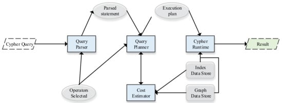 Figure 1 shows an overview of the generated process of the Cypher query plan. First, the Cypher query statement is submitted to the Cypher parser, and then the parsed statement generates an execution plan by the Cypher query planner; the execution plan tells the database which operators will be selected to complete a query task, and the final query result will be returned to the user by the Cypher Runtime. Additionally, the cost estimator selects the cheapest plan from the candidate execution plan queue by cost in the planner.