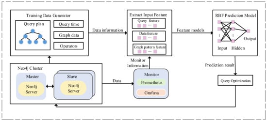 First, the data generator collects query plans, operators, and query records from the Neo4j database. Second, the data information from the generator is modeled and encoded to feature vectors by the feature extractor. Then, these feature vectors feed to the prediction model to train and then use the trained model to predict query performance without executing a query. Thus, users can complete optimization query tasks according to the prediction result. For database management systems, training data are produced by the Neo4j database cluster, which includes three nodes: one master node and two slave nodes. Furthermore, we deployed a monitor node to monitor the servers and collect data information.