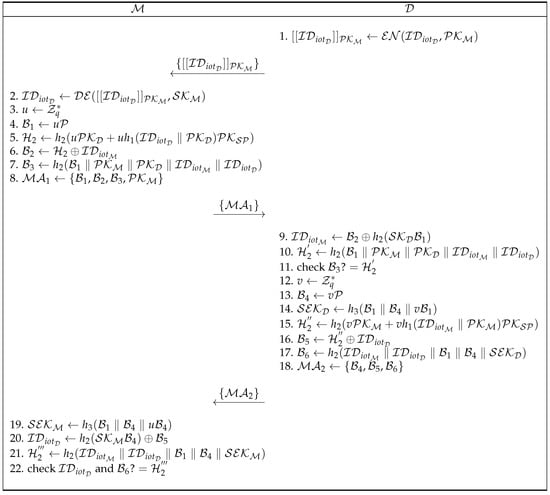 In Protocol : , and , four entities are involved in three scenario. The actions and processes of all of them are the same. Therefore, one scenario is secured means all of them are secured. This section considers the scenario of Figure 3. The function is :