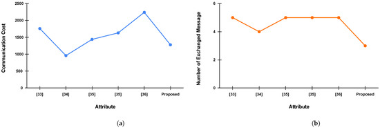 Performance analysis of the proposed scheme with the method of other domains in terms of communication cost and number of the exchanged message. (a) Comparison for communication cost; (b) Comparison for number of exchanged message.