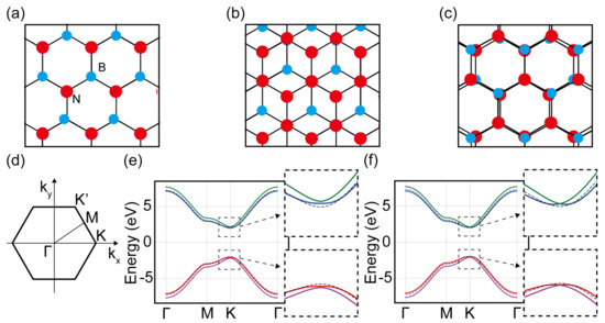 - Ribeiro, R.M.; Peres, N.M.R. Stability of Boron Nitride Bilayers: Ground-State Energies, Interlayer Distances, and Tight-Binding Description. Phys. Rev. B 2011, 83, 235312. [Google Scholar] [CrossRef] [Green Version]