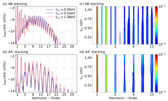 - Chen, Z.Y.; Qin, R. High Harmonic Generation in Graphene–Boron Nitride Heterostructures. J. Mater. Chem. C 2020, 8, 12085–12091. [Google Scholar] [CrossRef]