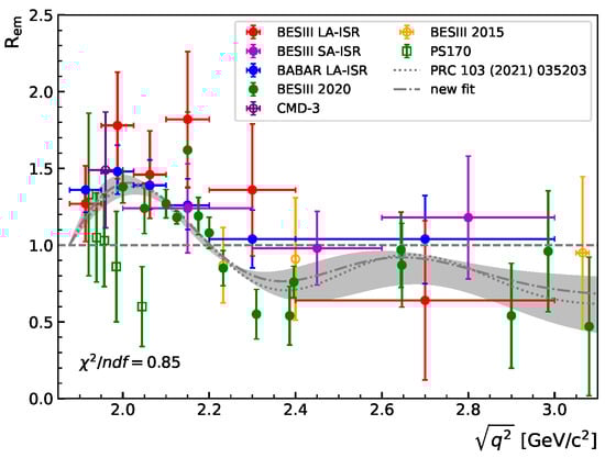 - Ablikim, M.; Achasov, M.N.; Adlarson, P.; Ahmed, S.; Albrecht, M.; Alekseev, M.; Amoroso, A.; An, F.F.; An, Q.; Anita; et al. Measurement of Proton Electromagnetic Form Factor in in the Energy retion 2.00–3.08 GeV. Phys. Rev. Lett. 2020, 124, 042001. [Google Scholar] [CrossRef] [PubMed]