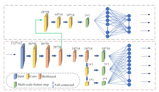 The bottleneck structure in the main network uses MobileNet [38] blocks instead of traditional convolution operations. The basic unit of MobileNet is depthwise separable convolution, which is a factorized convolution that can be decomposed into two smaller operations: depthwise convolution and pointwise convolution. Depthwise convolution is different from standard convolution. For standard convolution, the convolution kernel is used on all input channels (input channels), while depthwise convolution uses different convolution kernels for each input channel; that is, each convolution kernel corresponds to an input channel. Pointwise convolution is actually an ordinary convolution, but it uses a 1 × 1 convolution kernel. Depthwise separable convolution first uses depthwise convolution to convolve different input channels separately and then uses pointwise convolution to combine the above outputs. The overall effect is similar to a standard convolution, but it will greatly reduce the amount of calculation and number of model parameters, making the model smaller and faster.