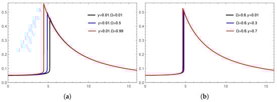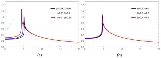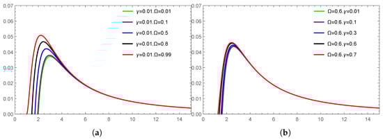 Obviously, according to Equation (11), we can plot as a function of b under different values of and , as shown in Figure 3.