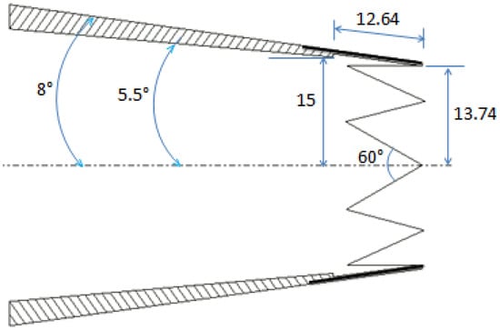 Cut section of chevron nozzle showing geometric details. (Reprinted/adapted with permission from Ref. []. 2014, Nikam, S.R. and Sharma, S.D.)