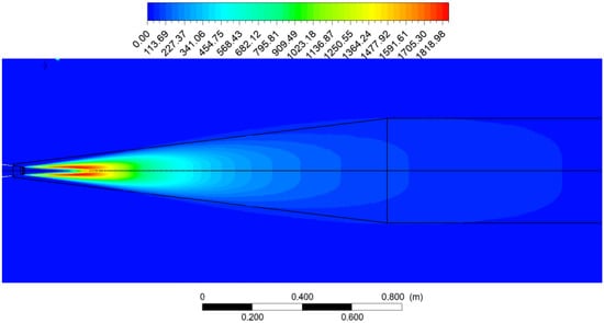 From the literature, it is found that the surface must be as close as possible to the jet but far enough from the axis to include all the major noise source terms—see Mendez et al. []. To find the region of the jet, a steady state solution is obtained with the mesh consisting of 4 million cells. Upon obtaining the turbulence contour, the prominent jet region was determined, and the FWH surface had been incorporated into the geometry in such a way that it encloses all the major source terms (Figure 3).