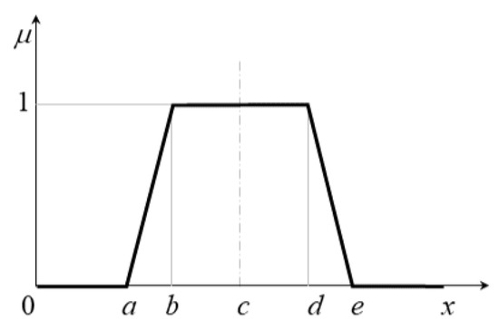 Equation (5) presents the membership function for the trapezoidal fuzzy set .