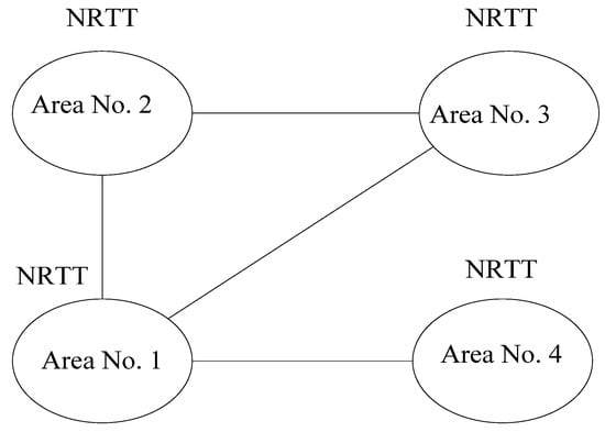 In case 6, the TAPS LFC problem is extended to a four-area power system (FAPS) in order to investigate the dynamic performance of the proposed design method. Figure 26 shows the structure of the four-area power system (FAPS), Area No. 1, 2, and 3 are from the non-reheated thermal turbine (NRTT), which are interconnected to others, while Area No. 4 is also from the NRTT, which is connected to area No. 1. The typical system parameters are provided in A5 in Appendix A []. In case 5, frequency regulation and tie-line power interchange between other areas are investigated to verify the efficacy of the proposed controller via the 2DoF-IMC technique.