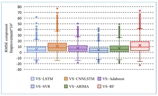 Box plots for distribution of the RMSE component improvement, in comparison with the improvement in MSE’.