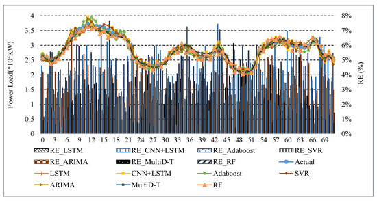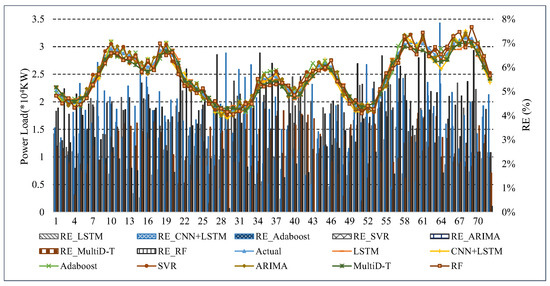 According to the electricity load demand results predicted by the different methods for these two time periods, the average value of the relative error of each method is calculated as shown in Table 9.