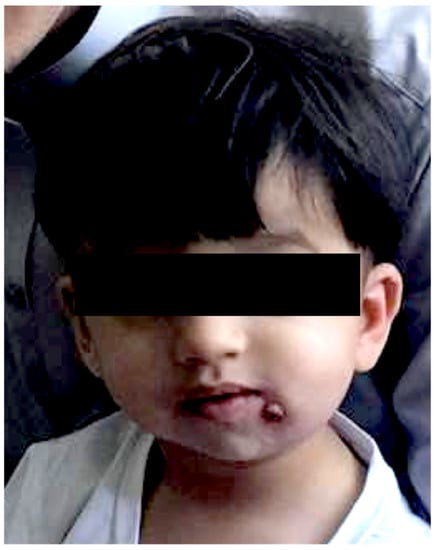 - Broome, M.; Vial, Y.; Jacquemont, S.; Sergi, C.; Kamnasaran, D.; Giannoni, E. Complete maxillo-mandibular syngnathia in a newborn with multiple congenital malformations. Pediatrics Neonatol. 2016, 57, 65–68. [Google Scholar] [CrossRef]
