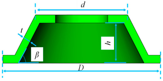 The AM-VI was designed as shown in Figure 1. it primarily consistes of an elastic component, a damping element, a limiting element, and other basic components. It is combined the superior vibration isolation property of rubber isolators with the better service environment adaptability of metallic materials. Four oblique rectangular springs were arranged symmetrically relative to the support and deployed to provide stiffness as stiffness support elements. This comprised the elastic components. The damping element consisted of an upper and lower hat-shaped metal rubber, respectively. It was capable of sustaining lateral and vertical tensile pressure loads. Figure 2 depicts its structure, and Table 1 lists the appropriate geometric parameters. Compared with the traditional stiffness elements and damping elements, the two aforementioned elements exhibit excellent properties of consistency, reliability, and creep. Limiting metal rubber constituted the limiting element. The limiting metal rubber, which was positioned in the middle of the base beneath the support, protected the AM-VI from shock. One shell, one base, and one support constituted the fundamental parts of the AM-VI. In addition, assembling the different parts of the AM-VI was made easier by the availability of numerous standard parts.