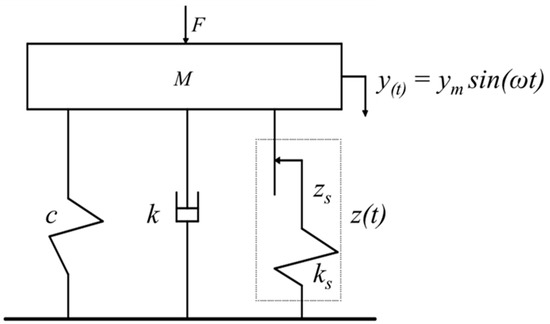 According to vibration theory, the dynamic test system of the AM-VI can be simplified to a hysteresis dynamic model, as demonstrated in Figure 6. Then, the corresponding vibration equation is established, which can be written as [24]: