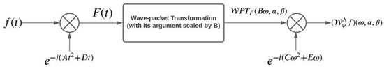 Definition 1. Given a parametric set , the quadratic-phase wave packet transform of any function is defined bywhere is given by (3). Define , then the quadratic-phase wave packet transform (4) can be recast asOr, equivalentlywhere and denoted the classical wave packet transform of a signal with its argument scaled by a parameter B. From (6), we observe that the computation of the quadratic-phase wave packet transform performs the following three actions in unison: - (i).