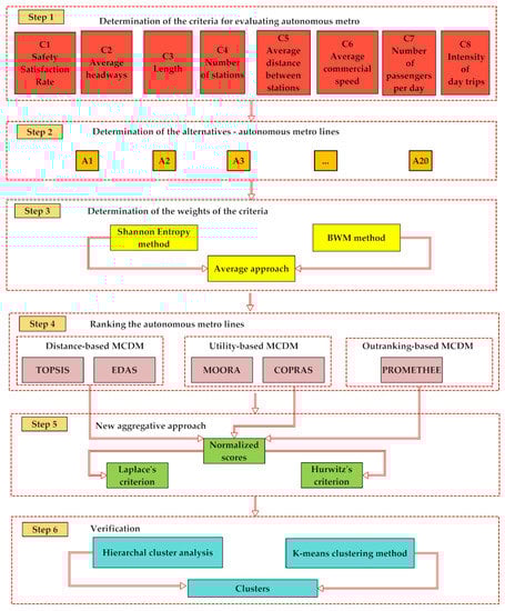 autonomous metro; TOPSIS; EDAS; MOORA; COPRAS; PROMETHEE; cluster analysis; Shannon Entropy; BWM; Laplace’s criterion; Hurwitz’s criterion 1. Introduction