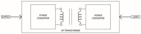 In comparison to conventional transformers, the SST incorporates power electronic converters using a HF transformer. Power switches such as MOSFET, IGBT, etc., are widely used [96,97,98,99]. The HF transformer plays a vital role in design and functionality. It deals mainly with the efficiency aspect, depending on the operating condition, and wire/core selection [100]. Although the high operating frequency contributes to the compactness and density of the transformer, there are many more limitations/restrictions which must be taken into consideration, such as insulation, power loss and costs [101,102,103,104].