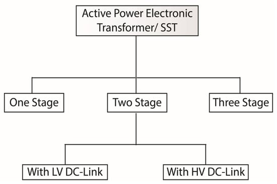 A single-stage SST topology is a configuration without a DC link, which restricts its operation of the integration of renewable energy sources, as well as energy storage devices. The deficiency of such a DC link exhibits no planning in terms of voltage regulation coupled with reactive power compensation [29]. Therefore, no arrangement existed for input power factor correction. In these circumstances a single-stage topology is not given due deliberation for the contestants of SST applications for future grid requirements [30,31,32].
