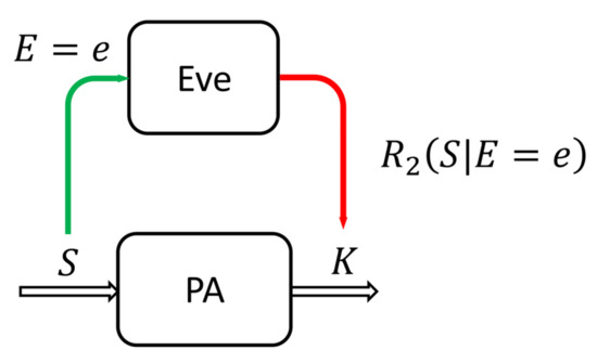 In Section 3, the classic PA block design strategy is presented. The importance of local decision making based on ECRE2 and the fundamental role of its lower bound was indicated. Theorem 2 can be considered a reformulation of Corollary 4 from [7] under conditions of knowing ECRE2. Theorem 3 gives the conditions under which the PA block provides maximum uncertainty about established secret keys on the Eve side if the lower bound for ECRE2 is known with a given probability.