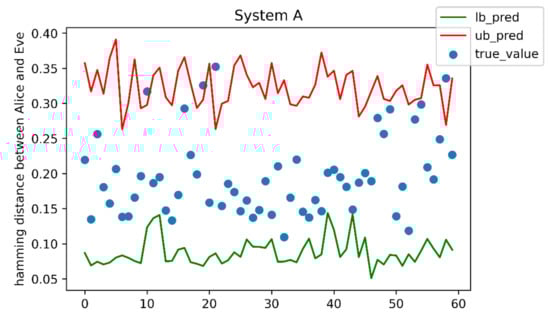 Therefore, the ML block should output an interval in which, with a given high probability of , the true value of ECRE2 falls, see Figure 4. Then we could use the lower bound of that interval as an estimate for ECRE2 in (12). According to Theorem 3, we now have a guarantee of the desired cryptographic properties for the obtained keys.