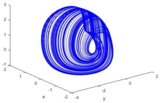 Three-dimensional diagram of the memristive chaotic system (6).