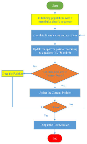2.2. Memristive Chaotic Sparrow Search Algorithm