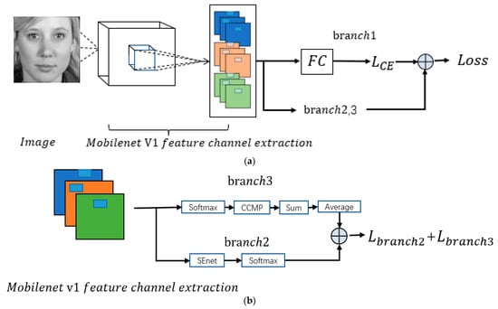 MobileNet V1 is used instead of the ResNet/VGG on MC-loss. Additionally, MC-loss has utilized the discriminative component to promote network learning. However, the discriminative component contains a random attention mechanism, such as the feature corresponding to each class of the feature extracted by the basic network is randomly discarded by the half. This random discarding method influences the recognition accuracy. Our network employs the attention mechanism branch network to take the place of the discriminative component. The attention mechanism branch does not contain the random discarding method. This branch can effectively distinguish the inter-class features of facial expression images.