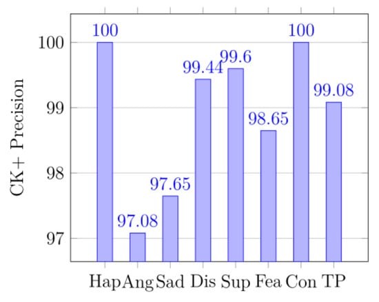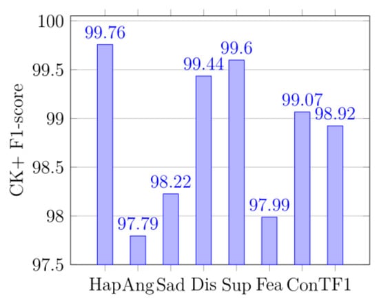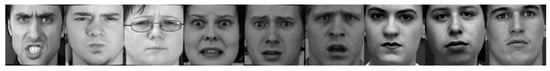 - Lucey, P.; Cohn, J.F.; Kanade, T.; Saragih, J.; Ambadar, Z.; Matthews, I. The extended Cohn-Kanade dataset (CK+): A complete dataset for action unit and emotion-specified expression. In Proceedings of the 2010 IEEE Computer Society Conference on Computer Vision and Pattern Recognition-Workshops, San Francisco, CA, USA, 13–18 June 2010; pp. 94–101. [Google Scholar]