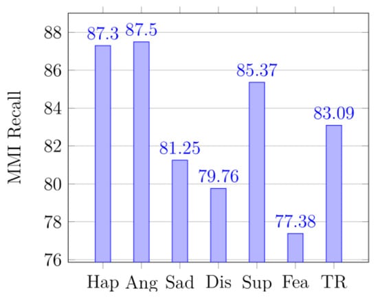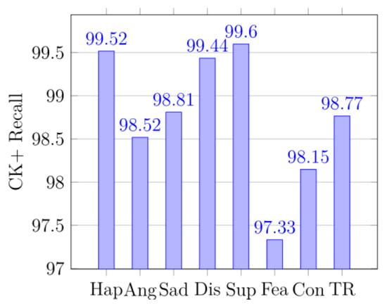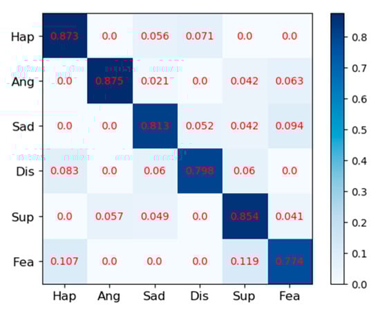 With the progress of technology, human–machine communication has been merged into our lives [1,2,3,4]. The applications of facial expression recognition (FER) have become ever more essential, such as human–computer interaction, online testing, medical care, etc. [5,6,7]. When applying a facial expression classification system, the various expressions have serious differences. That can be demonstrated by the FACS (Facial Action Coding System) [8]. AU (action unit) [9] and expressions have some correspondence. For example, there is a greater symmetrical similarity between happiness and contempt compared with the symmetrical similarity between happiness and sadness because happiness and contempt contain AU12, and there is no intersection between the AU domain of happiness and sadness. Similar facial expressions can sometimes make it difficult to make a distinction.