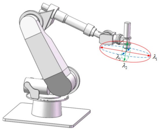 where λ 1 , λ 2 and λ 3 are the eigenvalues of C f d T ( θ ) C f d ( θ ) , respectively. K s t i ( 0 ,   +   ) and the smaller the K s t i , the better the stiffness performance of robot EE.