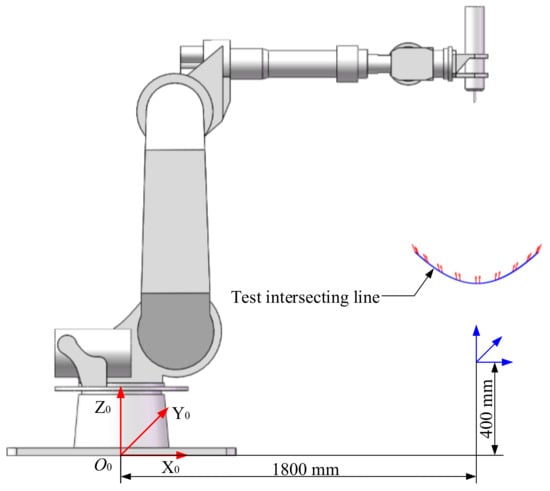Figure 7. Pose and posture relationship between the test intersecting line and milling robot.