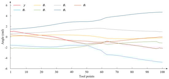 Figure 10. Optimized γ and the corresponding joint angles by PGOS.