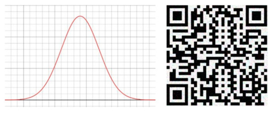 Gaussian noise probability distribution function and its quick response code image sample.