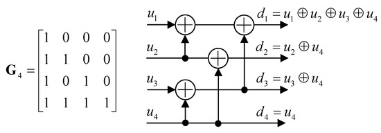 For example, for N = 4, the generator matrix and encoding procedure are shown in Figure 3.
