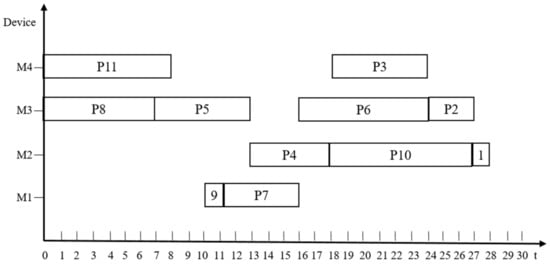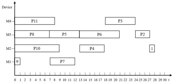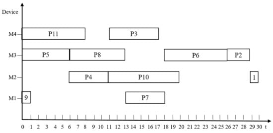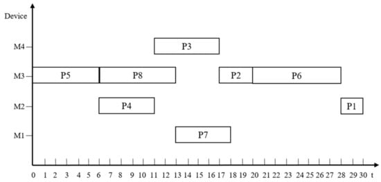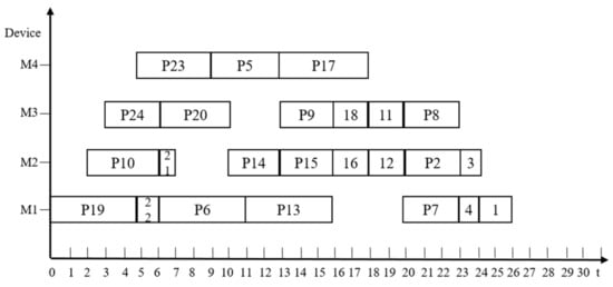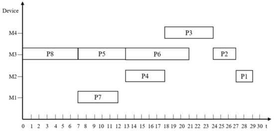 - Wang, Z.; Zhang, X.; Cao, Y.; Lai, G. An integrated scheduling algorithm for multi-device-processes with the strategy of exchanging adjacent parallel processes of the same device. EURASIP J. Wirel. Commun. Netw. 2021, 2021, 104. [Google Scholar] [CrossRef]