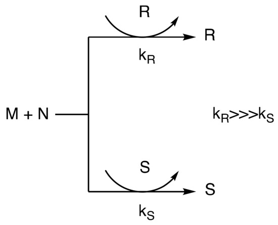 In the early fifties of the last century, Frank proposed a mathematical model for the predominance of homochirality during chemical synthesis. The model is simple: a chiral molecule catalyzes its own formation, suppressing the formation of the opposite enantiomer with, for example, the exclusive formation of an R or S enantiomer for a non-chiral starting material (Figure 1). The model, which is widely accepted today, proposes the amplification of a small initial asymmetry in the chiral reactions, and concludes that it is the key element for this simple scheme of reactions [35].