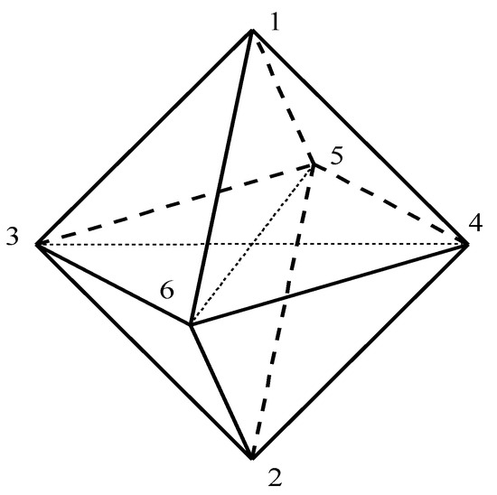 here represents the cyclic group of order 2. Thus the Abelian group has four elements, identity element of order 1, and the remaining three elements of order 2. Let us represent these elements by , where is the axis joining vertices 5 and 6, is the axis joining vertices 3 and 4, and finally is the axis joining vertices 1 and 2; see Figure 1.