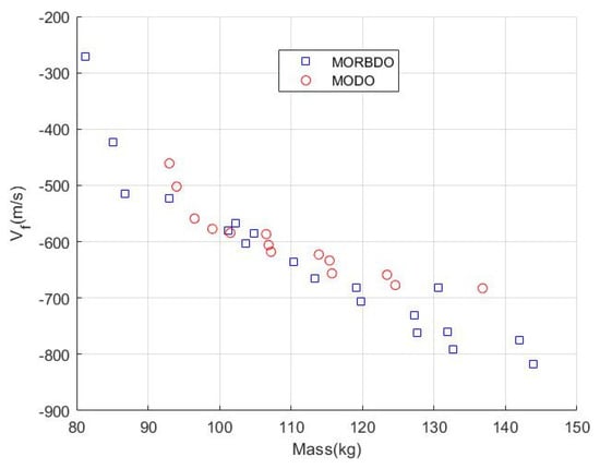 Comparison of MODO and MORBDO solution set in 2-Dimension (Mass-Vf).