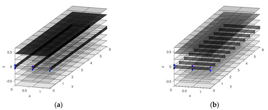The aeroelastic design of a composite aircraft wing with fuzzy material property uncertainties and permitted transverse wing displacement serves as the design demonstration of this research. The Goland wing [35] is used as the model of an aircraft wing’s structure (Figure 3). In general, the geometry of the Goland wing is 1.216 m in chord length and 6.096 m in the semi-span wing. The aircraft wing has two major materials. The main structures are aluminum spars and ribs. The whole skin of the wing is made from three layers of laminated carbon fiber, and the general properties of the aluminum and carbon fiber are listed in Table 1.