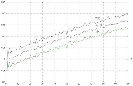 Note that the inequality for system (15) yields the relations for all . The properties of the matrix allow us to state that these relations will be true, even though is not true since system (15) with the matrix "forgets" the initial conditions for . Really, denote and consider the first equation in (15); solution (15) can be represented as