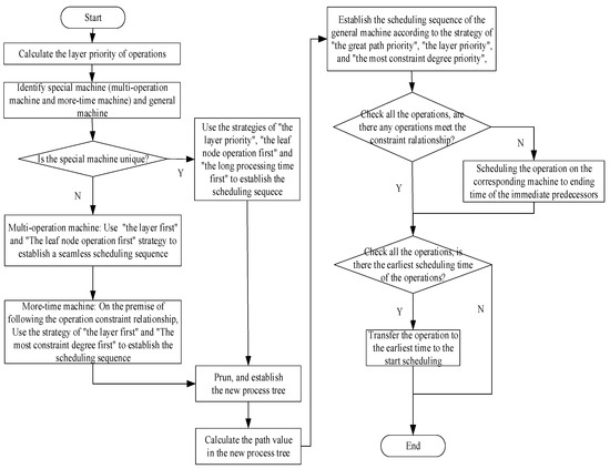 Step4: On the special machine, use the strategies of “the layer priority”, “the leaf node operation first”, and “the long processing time first” to establish the scheduling sequence;