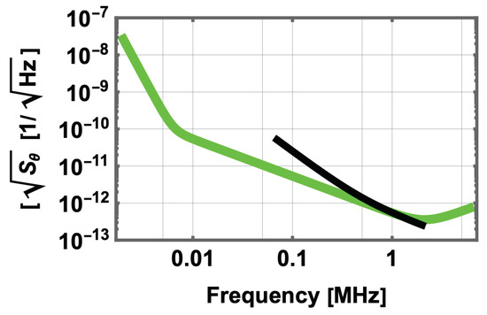 Thus, we have two noise sources () that can be added in quadrature as presented in Equation (9), so that the spectral theta angle sensitivity becomes,