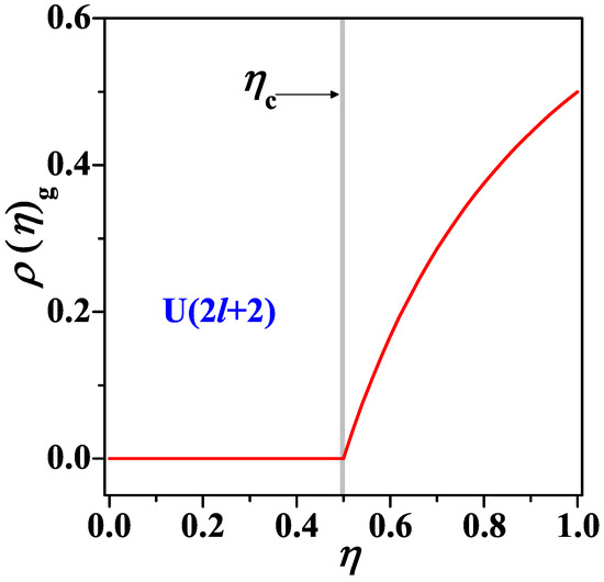 where represents the ground state energy per boson. It is thus suggested that the quantity may serve as a quantum order parameter [29] for the U(n)-SO() QPT. As seen in Figure 1, one can locate the critical point of this QPT at . It means that the E(n) DS may also play a role of critical point symmetry (CPS) in the U() vibron model [13,30].