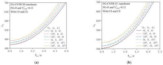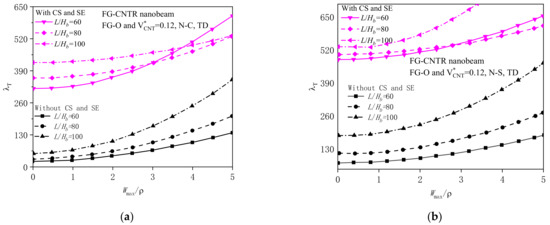 In this section, the impacts of the aspect ratio () and substrate stiffness constants (, , and ) on the buckling analysis of FG-O nanobeams with are discussed in detail. The geometrical properties adopted are: nm, nm. The combined effects of SE and CS and effective TD material properties are also involved in the present size-dependent model, and the same below.